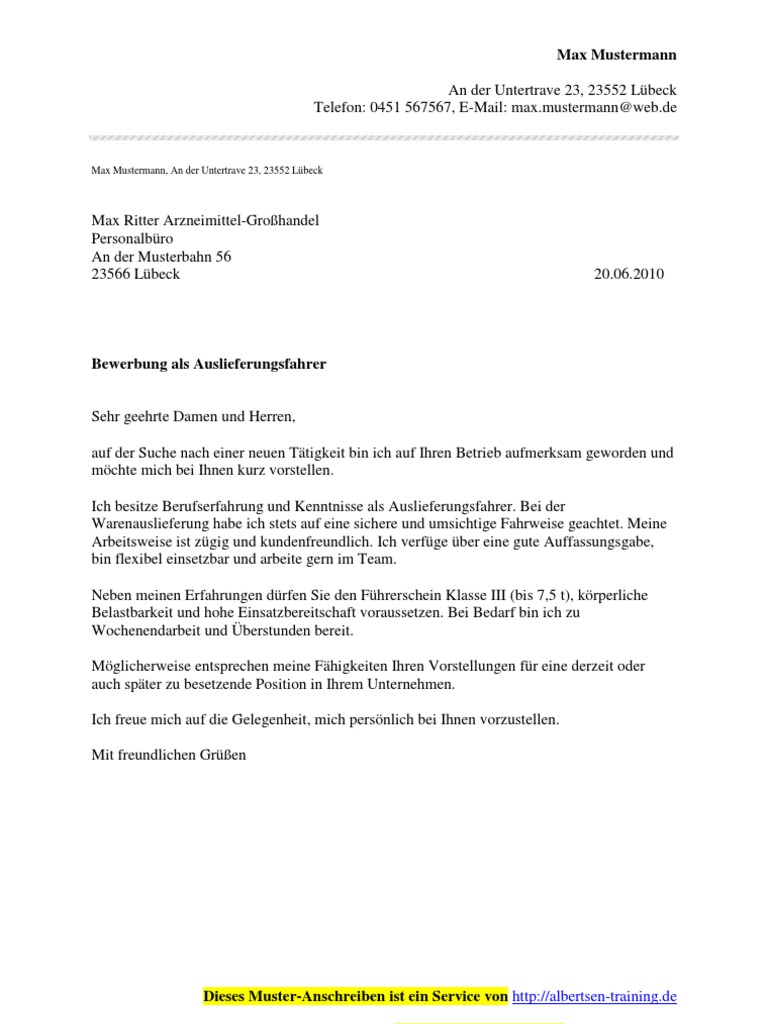 Anschreiben und Lebenslauf als Download. Sehen Sie sich auch einige andere Briefe im gleichen Bereich an und kombinieren Sie eventuell Teile aus mehreren Briefen. 20 Bewerbung Als Fahrer Zohn Muldoon.