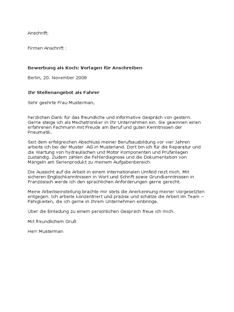 Anschreiben und Lebenslauf als Download. Sehen Sie sich auch einige andere Briefe im gleichen Bereich an und kombinieren Sie eventuell Teile aus mehreren Briefen. 20 Bewerbung Als Fahrer Zohn Muldoon.